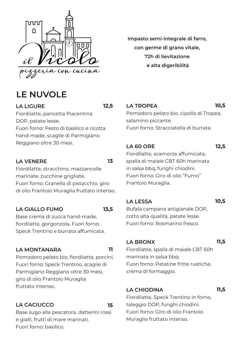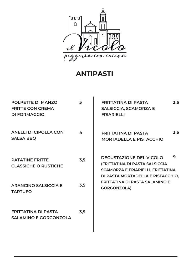 IL VICOLO Pizzeria con cucina - Reggiolo - Menu